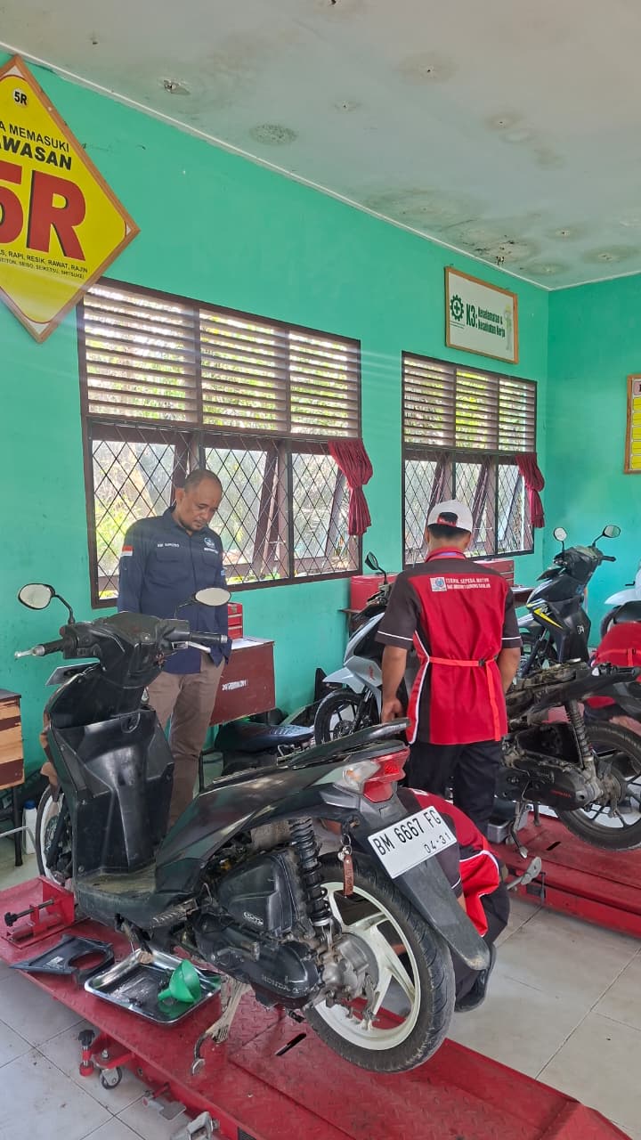 Kegiatan Uji Kompetensi Keahlian (UKK) Lembaga Sertifikasi Profesi (LSP) Jurusan Teknik dan Bisnis Sepeda Motor (TBSM) di SMK Negeri 1 Gunung Sahilan berlangsung dengan tertib dan penuh semangat. Kegiatan ini merupakan salah satu bentuk evaluasi akhir bagi peserta didik untuk mengukur kompetensi yang telah mereka pelajari selama masa pendidikan.