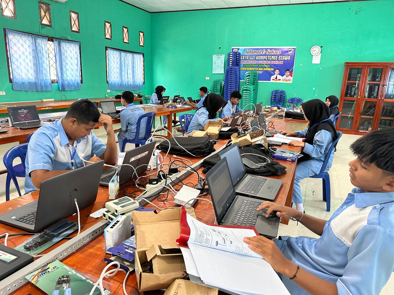 Pelaksanaan Uji Kompetensi Keahlian (UKK) Lembaga Sertifikasi Profesi (LSP) Jurusan Teknik Komputer dan Jaringan (TKJ) SMK Negeri 1 Gunung Sahilan memasuki hari kedua dengan suasana yang tetap kondusif dan penuh semangat. Kegiatan ini menjadi lanjutan dari proses penilaian kompetensi siswa dalam menguasai bidang keahlian jaringan komputer dan teknologi informasi.